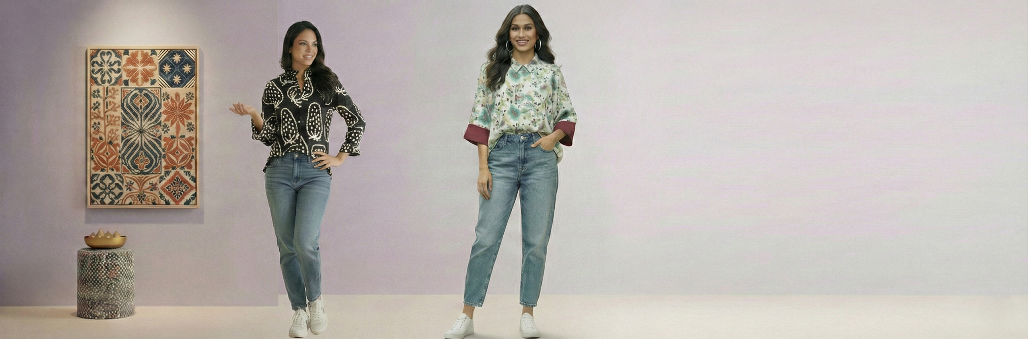 Our name means The Joy of Timeless Art — and that joy is reflected in everything we create. We bring heritage techniques like Bagru, Ajrakh, Dabu, Batik, and Sanganeri printing into contemporary silhouettes, creating fashion that is authentic yet modern, artisanal yet accessible.